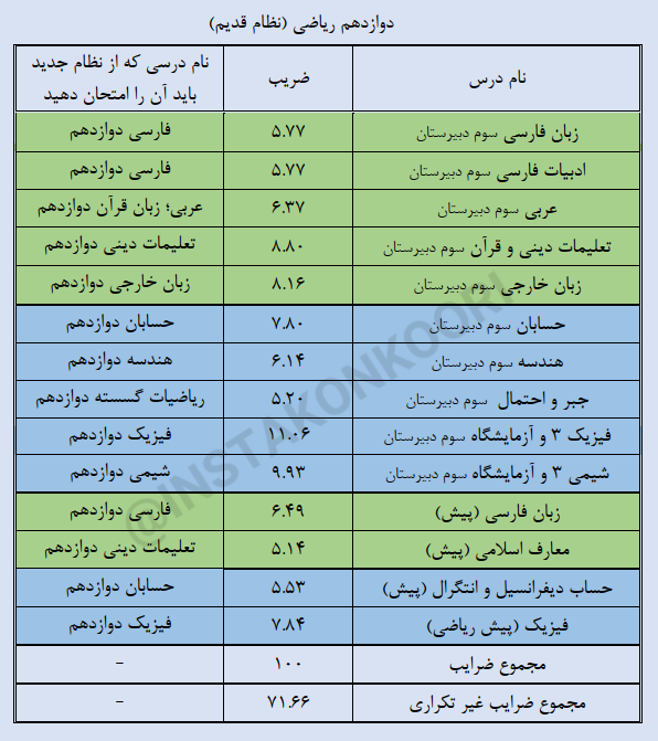 اگه نظام قدیمی هستی و میخوای دوباره کنکور شرکت کنی توی جداول بالا سمت راست نوشتیم برات که بجای هر درس الان باید چه درسی رو آزمون بدی تا سوابق تحصیلیت رو بسازی.