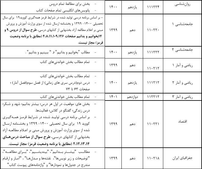 منابع حذفی هرسال تغییر میکنن و ما این تغییرات رو توی این مطلب به روز رسانی میکنیم. عکسهای قرار گرفته متعلق به کنکور تیر ۱۴۰۵ هست.