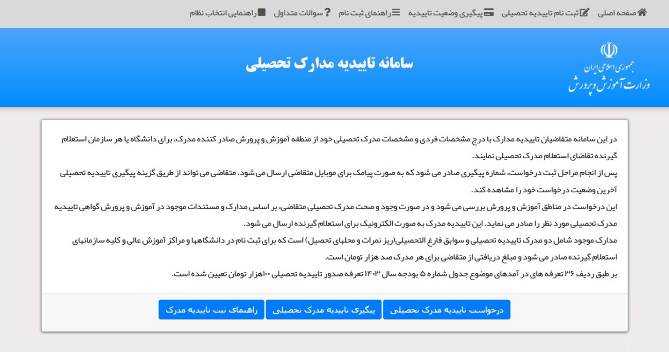 سامانه پیگیری تاییدیه تحصیلی آموزش و پرورش